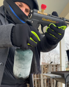 Conversely, a bottle that is too cold will not give enough pressure. This will negatively affect your Grillblazer experience, sometimes even worse than having too much pressure! Cold bottles discourage liquid propane from turning into gaseous propane, which will both give wimpy pressure to your gun, and starve your gun of fuel, resulting in a weak flame. Nobody likes a weak, tiny flame. When it's cold outside, make sure to store your propane inside or in a warm area to make sure that your propane tanks are ready to go when you need them.