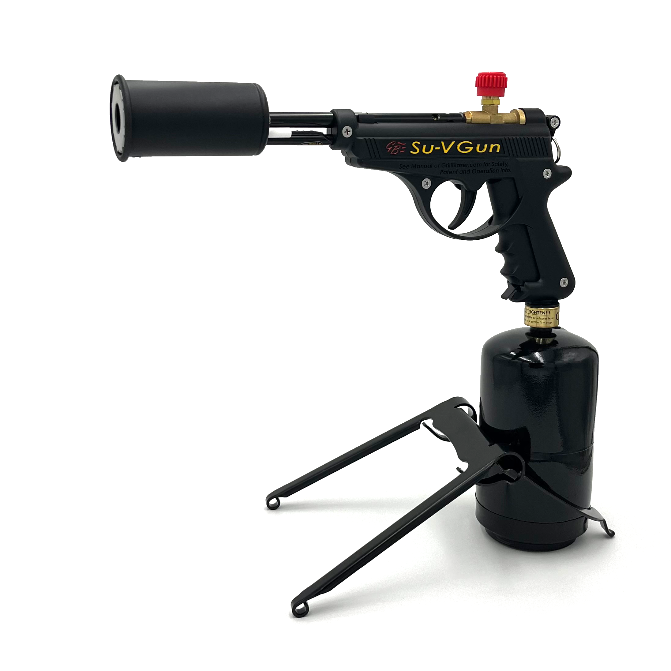 Each of our torches comes with an included bottle stand packaged just underneath the user's manual. These Stands are used to hold and display your GrillGun or Su-VGun when using a propane bottle.